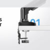 • אפשרות כיוון מלא בו מנח המסך נשאר יציב לחלוטין בכל זווית, בהשוואה לזרועות אחרות - ניתן לשלוט בקלות בהברגת הצירים להתאמה מושלמת