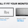 •  למסכים בגודל 13-27″ אינצ׳ במשקל 2- ק״ג בהתאמה עבור דפוסי VESA של 75x75mm & 100x100mm.