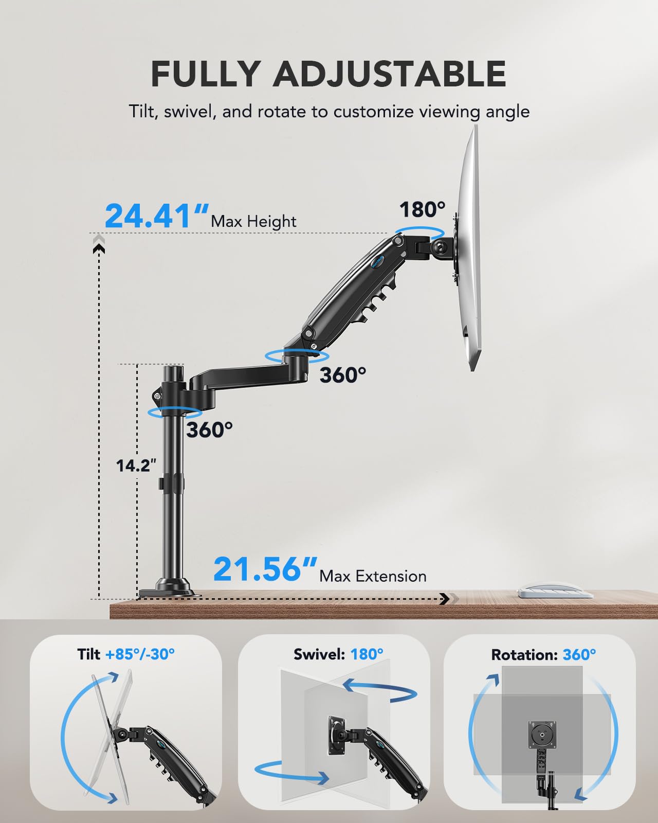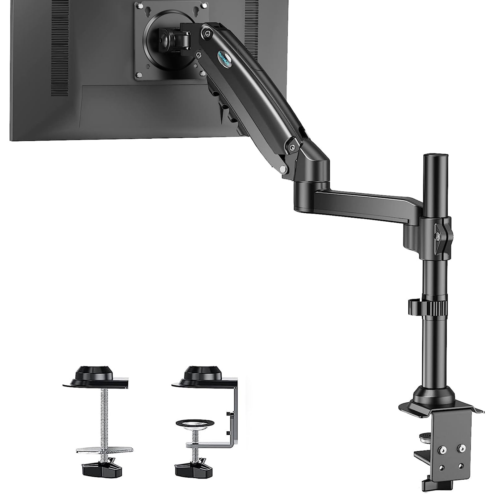 זרוע למסכי מחשב גדולים דגם HNSS8 של המותג HUANUO - הזרוע הנמכרת ביותר בקטגוריה שהפכה ל Amazon Choice עם עשרות אלפי פידבקים חיוביים ב UK / US. זרוע איכותית למסך מחשב המשפרת את הנוחות והפרודוקטיביות של משתמש בכל סביבת עבודה. הזרוע מתאימה לשולחנות עבודה סטנדרטיים ולשולחנות חשמליים כאחד. 2 שנות אחריות רשמית.