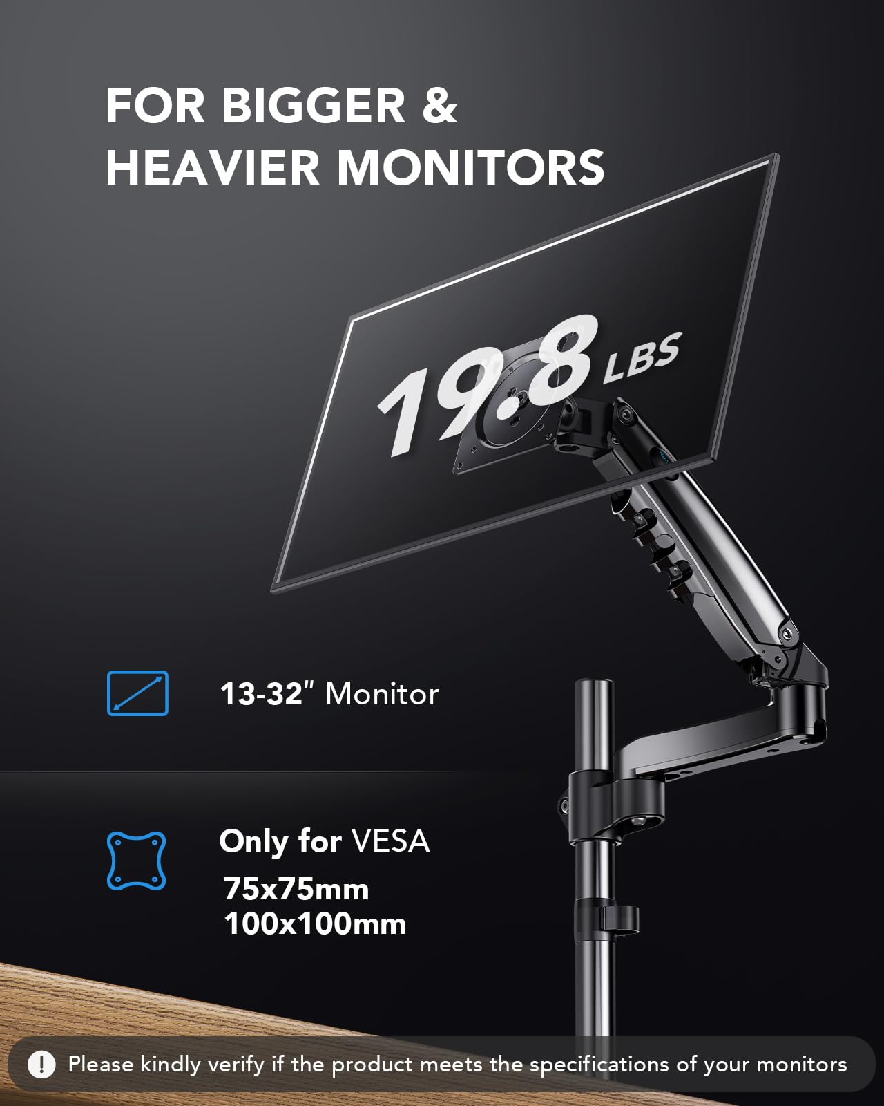 למסכים בגודל 17-32 אינצ׳ במשקל 2-9 ק״ג בהתאמה ל VESA 75X75 100X100