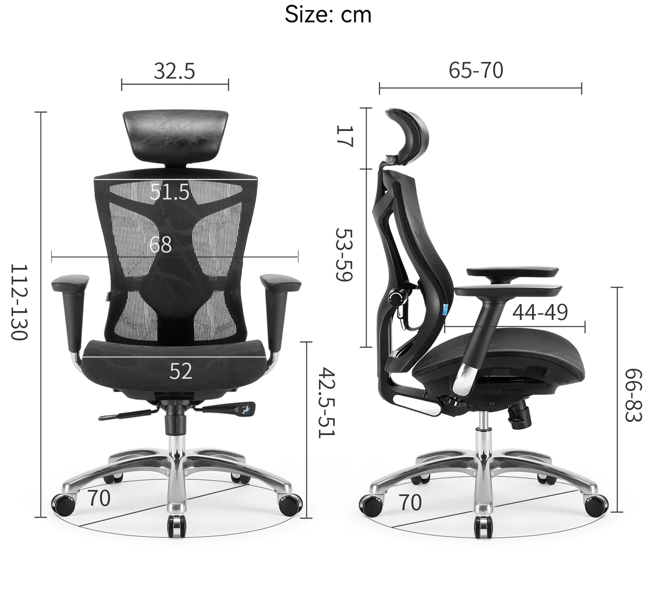 גובה (ס״מ) | מהרצפה עד משענת היד 66-83 | מהרצפה עד המושב 42.5-51 |